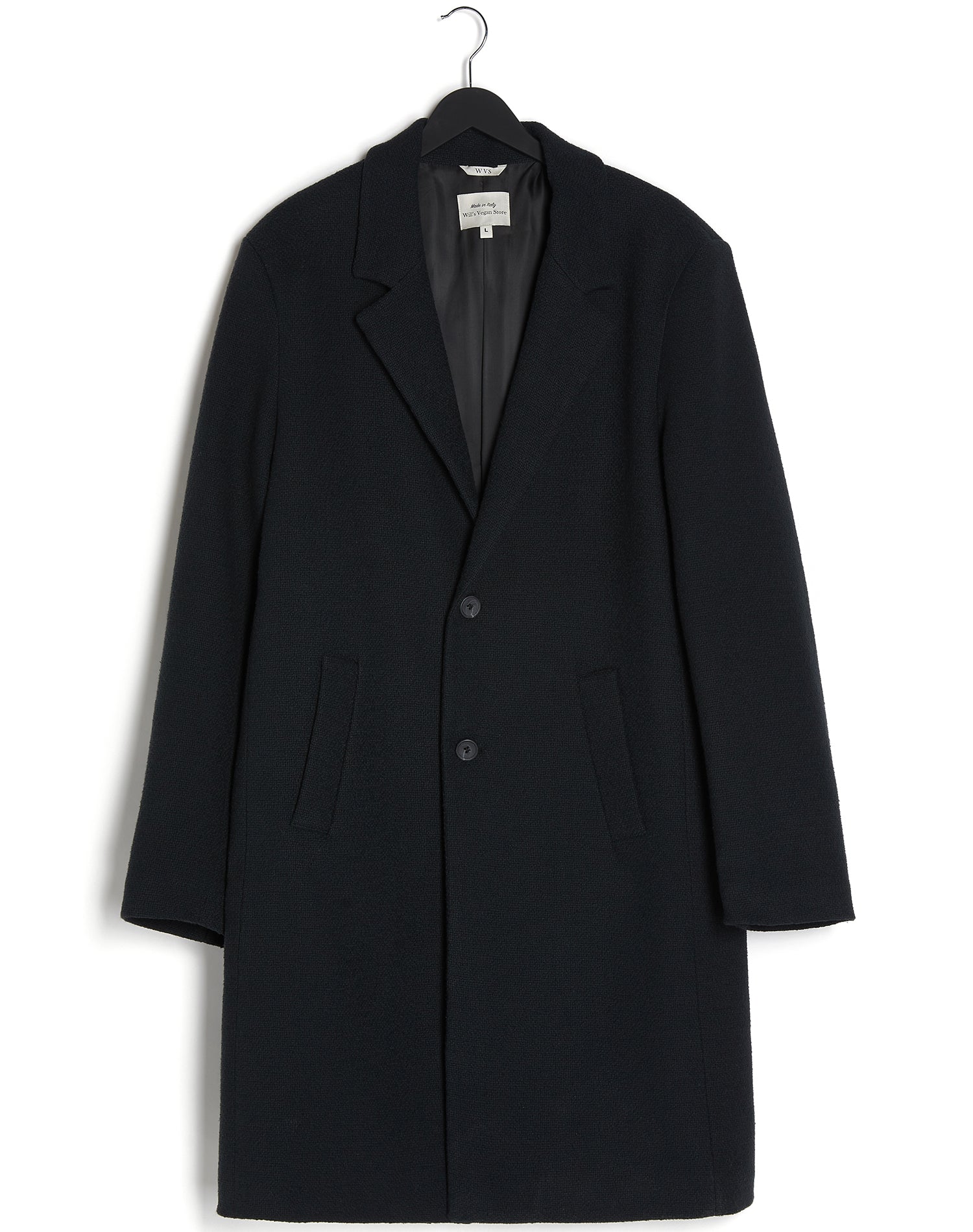 This understated and sophisticated coat is a timeless style you're sure to wear for years. Tailored in Italy from “vegan wool” made from Greenpeace DETOX & Oeko Tex® standard 100 certified cotton (certificate 1108929.0).